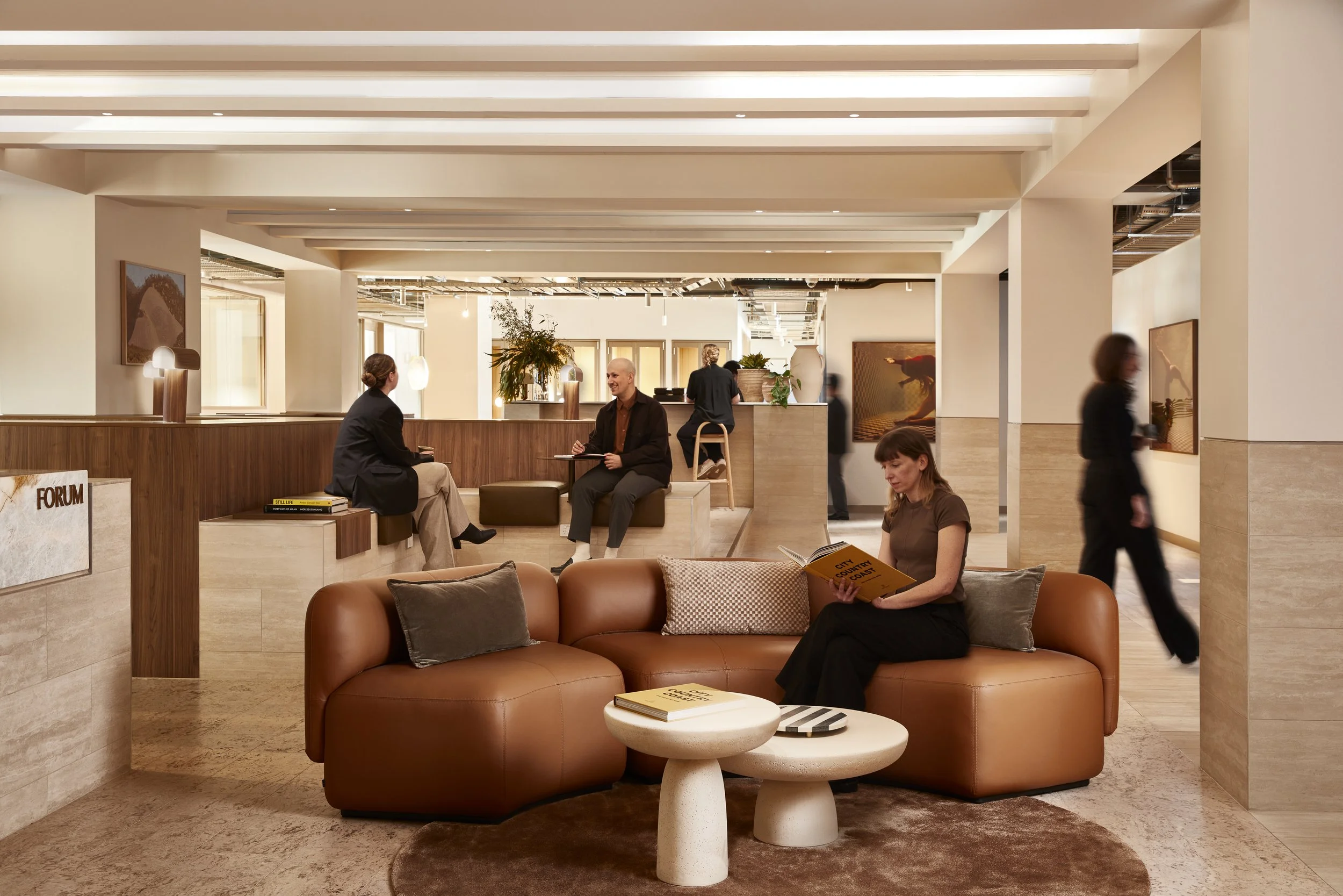 Forum becomes less a coworking facility and more a contemporary agora shaped for connection and collective momentum.