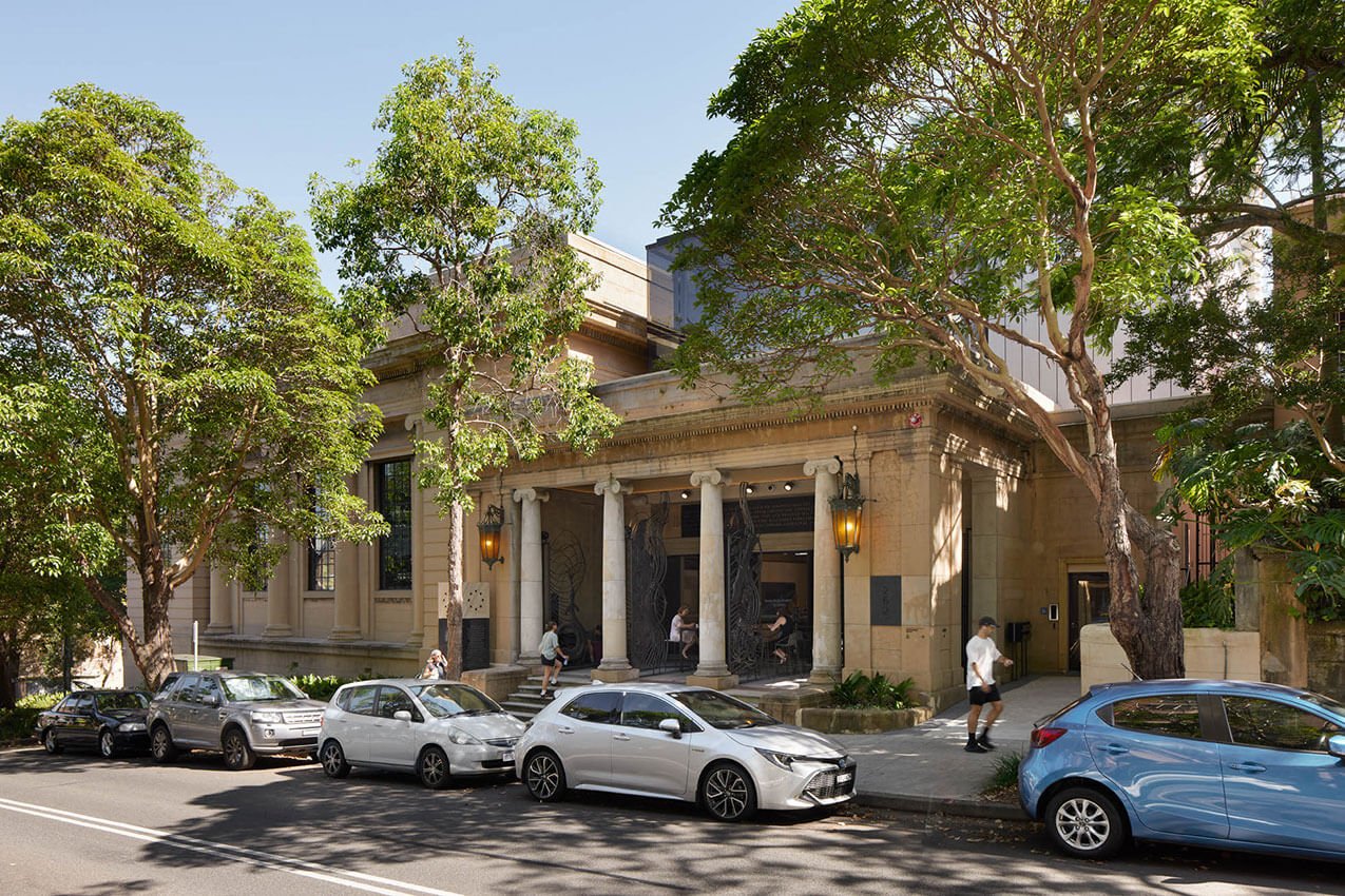 The name Yirranma Place means “a place where many create.” The naming followed engagement with local Gadigal Elders, Aboriginal community groups and language experts. It acknowledges Aboriginal histories and contributes to the revitalisation of the Gadigal language. Cultural recognition is embedded at the threshold through a public artwork by Barkandji Elder, artist and activist Uncle Badger Bates, positioned at the iron gate entry to the south-eastern portico. The commission establishes a clear sense of place and reinforces the building’s civic presence.